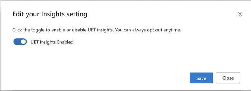 Enable and disable UET Insights easily from the Microsoft Advertising platform.